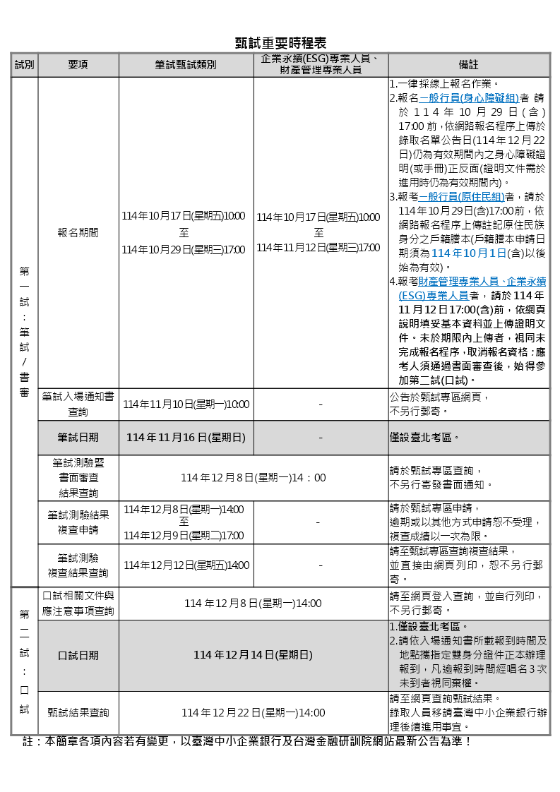 臺灣中小企業銀行114年度第三次新進人員甄試