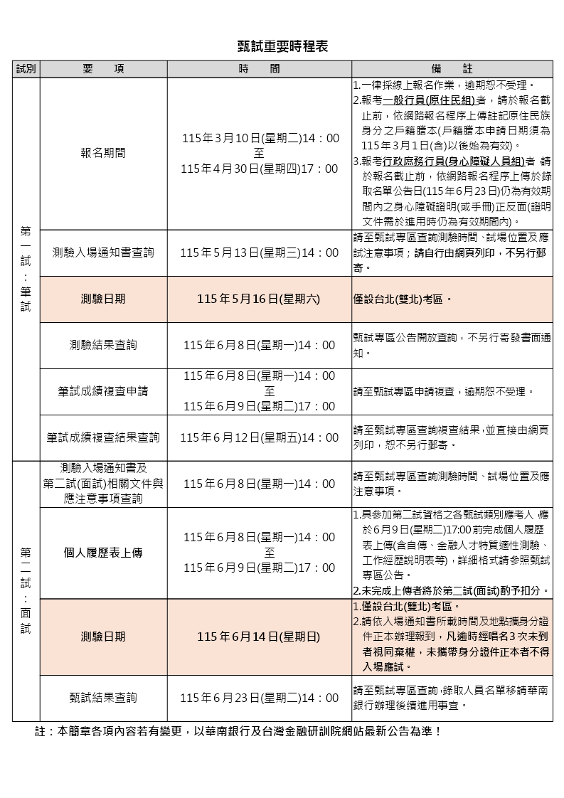 華南銀行115年度第二次新進人員甄試