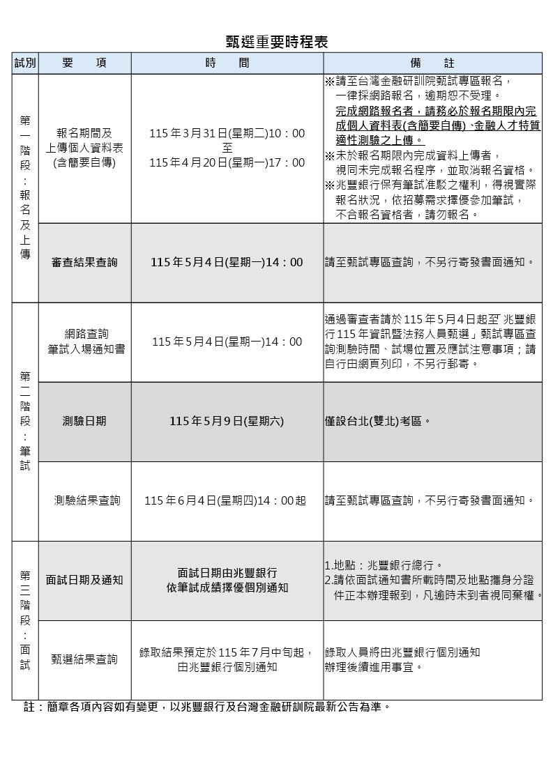 兆豐銀行115年資訊暨法務人員甄選